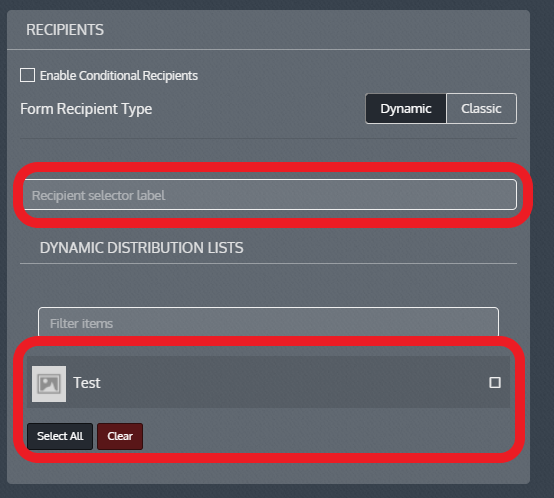 Add a recipient selector label if necessary & select a Distribution List(s)
