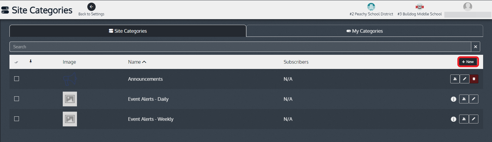 Edit Site Categories in News Settings