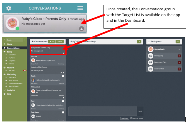 Create Conversation Using Classrooms Target List - App