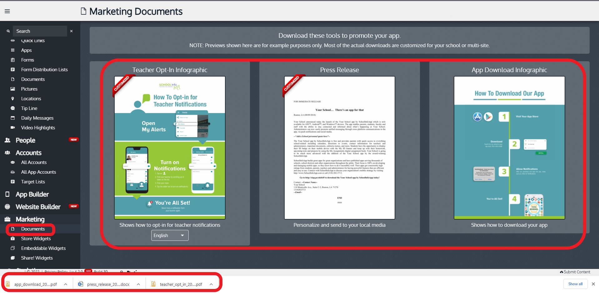 These downloaded documents automatically customize themselves to your school name & colors. This creates minimal work on your end!
