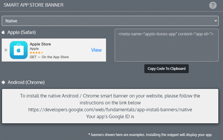 Step 4: You can also find the Universal "Smart App Store Banner" here.